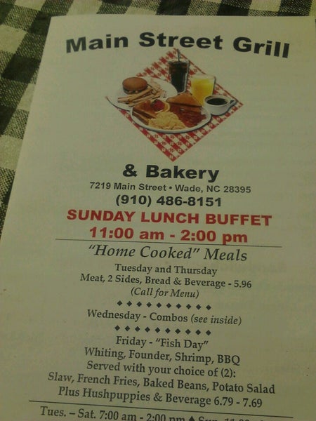 the main street grille is located in Wade, NC and serves local residents and visitors seeking reliable American Cuisine services.